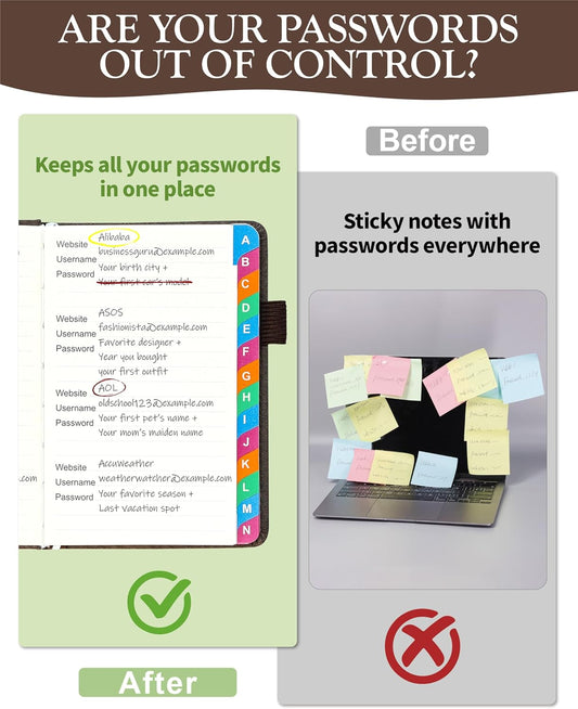 Password Keeper Book with Colorful Alphabetical Tabs, Hardcover Password Log-Book for Internet Password and Website Address, 5.8"×8.4" Password Notebook for Home Office (Sienna)
