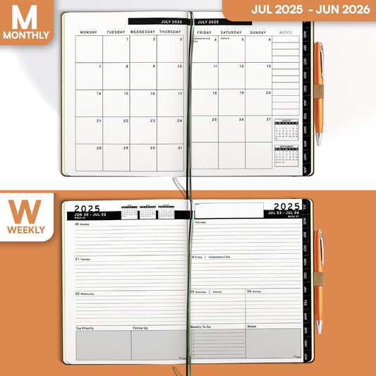 2025-2026 Planner - Academic Planner 2025-2026 from July 2025 - June 2026, Weekly & Monthly Planners Spiral Bound with 12 Monthly Tabs, Inner Pocket, 6.4" x 8.5", Green