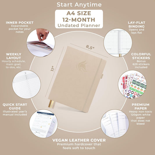 Clever Fox Planner PRO Schedule – Undated Weekly & Monthly Life Planner with Time Slots, Appointment Book & Daily Organizer, A4 (Seashell)