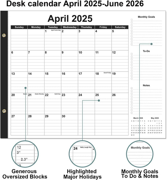 Large Desk Calendar 2025-2026 - 22" x 17" Desk Calendar from April 2025 - June 2026, Desktop Pad Calendar Perfect for Planning and Organizing In Your Home, School or Office, Black