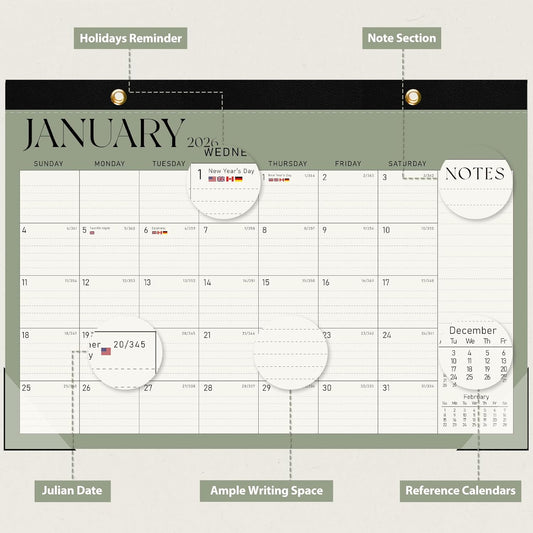 Desk Calendar 2025-2026, 18 Months (July 2025 to December 2026) - Large Size 17" x 12" Desktop/Wall Monthly Calendar with To Do List, Personal Desk Calendar Planner for Home, School, Office - Green