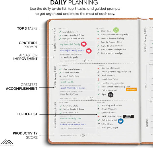 2025 Planner Pro 5.8 x 8.3 - Undated Productivity & Business Planner Notebook & Journal - Monthly Planner 2025 & Daily Planner 2025-2026 - A5 - Brown - Productivity Store