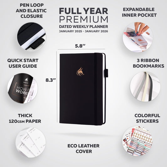 Clever Fox Dated Planner Premium 2025 – Weekly Agenda for Planning & Time Management –Notebook with Habit Tracker & To-do List (Black)