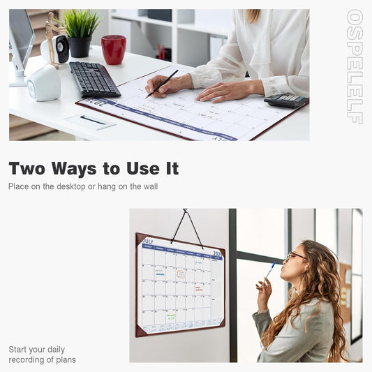 Ospelelf Large Desk Calendar 2025-2026 with PU Leather Pad, 18 Months Planner Pad from July 2025 to Dec 2026, 22" x 17" Wall Calendar with Protective Cover for Home or Office, Brown