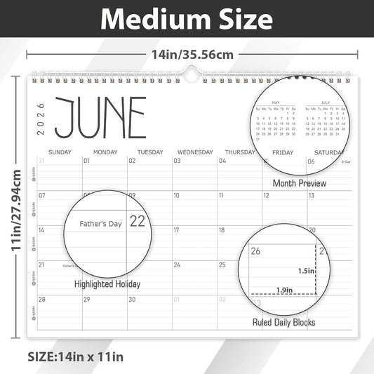 2026 Calendar - 2026 Wall Calendar, Jan. 2026 - Dec. 2026, 14.6'' x 11.4", Large Wall Calendar with Highlighted Holidays, Sturdy Binding, Calendar for Planning