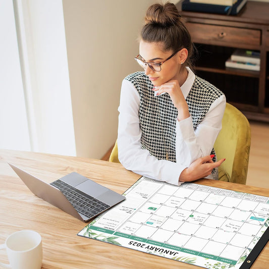Ospelelf Desk Calendar 2025-2026 Large 22"x17" Monthly Planner Pad with Plastic Cover 18 Months Green Leaves