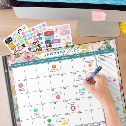 Ospelelf Desk Calendar 2025-2026 Large 22'' x 17'' Monthly Calendar 2025 Desktop Calendar, 18 Month Calendar, Use July 2025 - Dec 2026, Floral