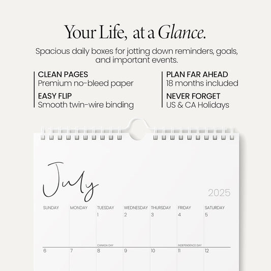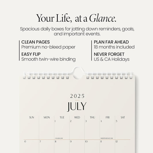 Karto Wall Calendar 2025-2026 - Vertical 8.5x11 inch July 2025 to December 2026 - Boost Your Productivity and Easy Planning with the Aesthetic Monthly Calendar - Beige