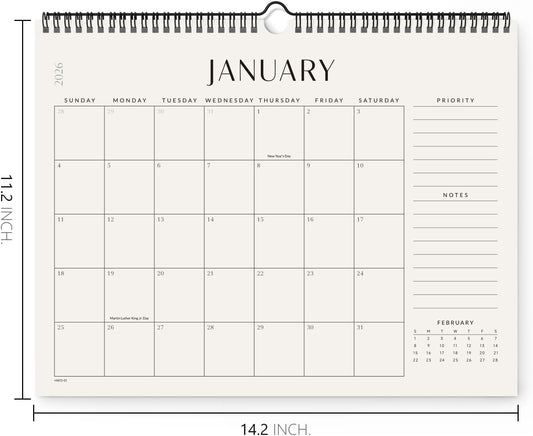 2026 Wall Calendar - 2026 Calendar, JAN 2026 - DEC 2026, 12" x 17", Large Calendar 2026 with Twin-wire Binding, Notes, Perfect 2026 Wall Calendar 12 Month for Organizing