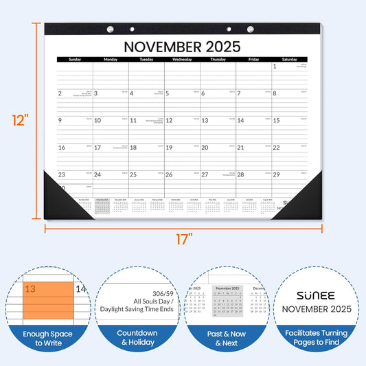 SUNEE Desk Calendar 2025-2026, 18 Months from Oct. 2025 to Mar. 2027, 17"x12" Academic 2026 Calendar for Home, School, or Office Desk Top Organizing, Black Monthy Calendar 2026