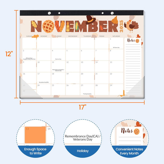 2026 Desk Calendar - Desk Calendar from January 2026 - December 2026, 12" x 17", 12 Monthly Calendar, 2026 Calendars with Protector Corner, Large Blocks