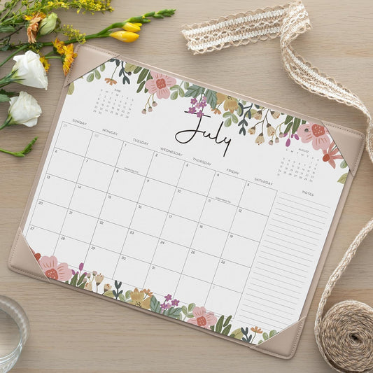 Cabbrix Desk Calendar 2025-2026 with Desktop Mat, Floral Desk Pad Calendar 15 x 12 Inch Runs From July 2025 to December 2026, Desk Blotter Calendar for Home School and Office (Floral)