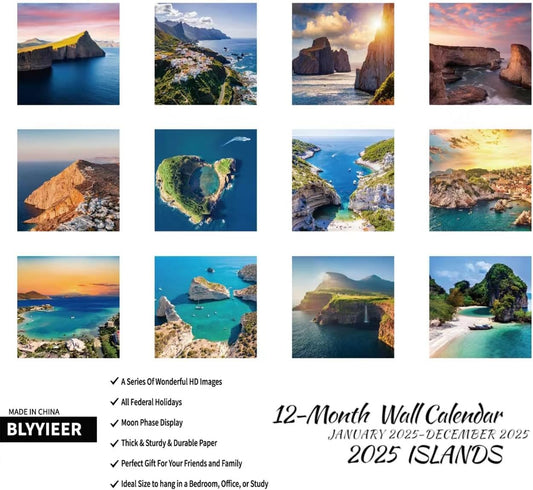 2025 Wall Calendar,Islands Monthly Wall Calendar, 12" x 24" Open,Family Planner Calendar,Home & Office Organizer,Hangable