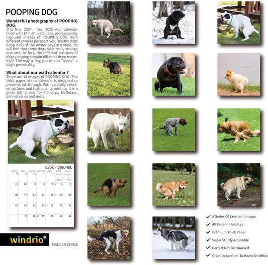 Gag Gift 2025 Wall Calendar, Funny White Elephants Funny Pooping Dogs Calendar 2025,12 Monthly Calendar, January 2025 - December 2025, 12" x 24" Opened Full Page Thick & Sturdy Paper for Organizing