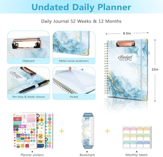 Ospelelf Undated Budget Planner with Expense Tracker and Bill Organizer Large Spiral Bound Monthly Account Planners to Take Control of Your Money 12 Months Blue