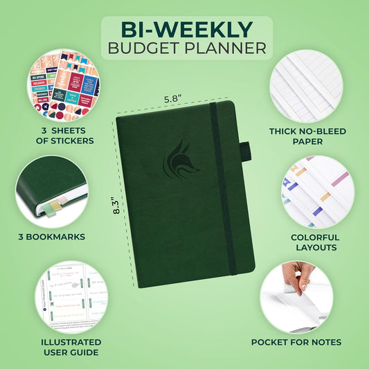 Clever Fox Bi Weekly Budget Planner – Undated Financial Organizer Book – Expense Tracker, Budgeting & Bill Notebook, A5 (Dark Green)