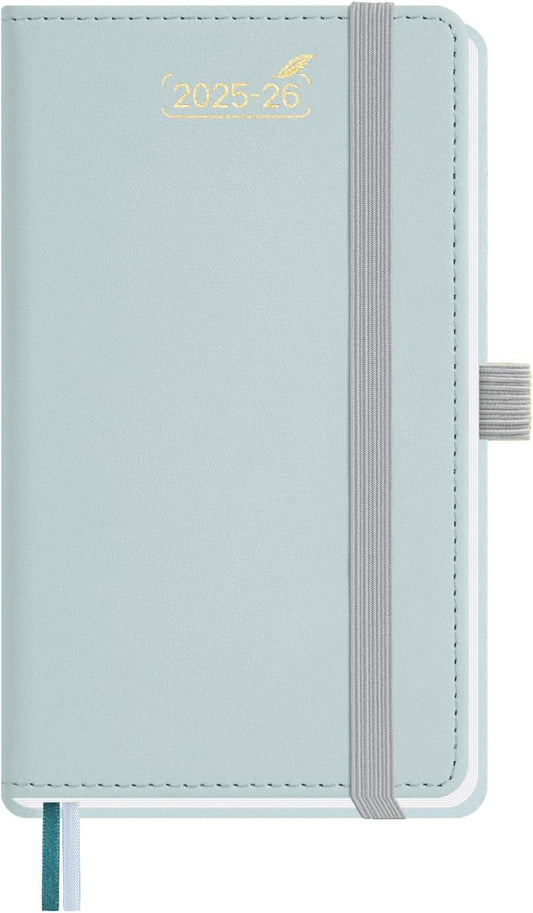 BEZEND Pocket Planner 2025-2026 Weekly and Monthly, 3.5" x 6" Academic Planner (Jul 25-Dec 26) 18-Month Mid-Year Calendar Book, Storage Pocket, Pen Holder, PU Leather Softcover, Spiral - Turquoise