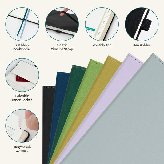 POPRUN Planner 2025-2026 Weekly Notebook (Medium 6.5''x 8.5'') Academic Calendar (JUL.25 - JUN.26) Appointment Book with Monthly Tabs, Leather Soft Cover, Inner Pocket, 100 GSM - Petrol Green