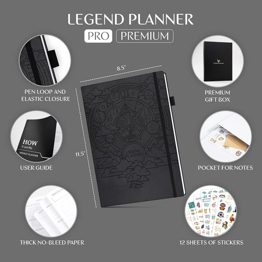 Legend Planner PRO Premium – Large Undated Weekly, Monthly & Budget Planner with Habit Tracker – Life Organizer for Time & Task Management, Goal Setting & Productivity – A4 size (Black)