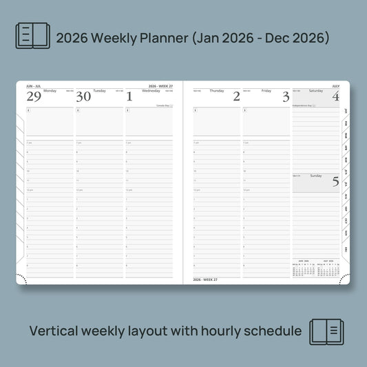 POPRUN 2026 Planner (Large Size 8.5''x 10.5'' Hardcover) - Daily Weekly and Monthly Calendar Agenda 2026 Appointment Book with Hourly Time Slots, Monthly Tabs, 100 GSM - Pacific Green