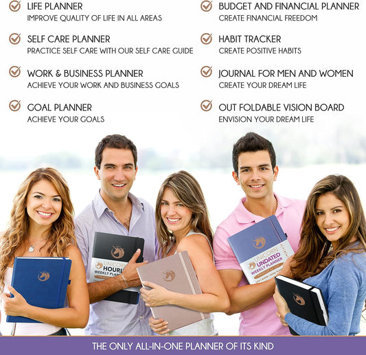 Hourly Planner - Undated Daily, Weekly & Monthly Planner with Budget Section | A 12 Month Journey to Increase Productivity & Happiness | Life Organizer & Gratitude Journal - Vertical Format