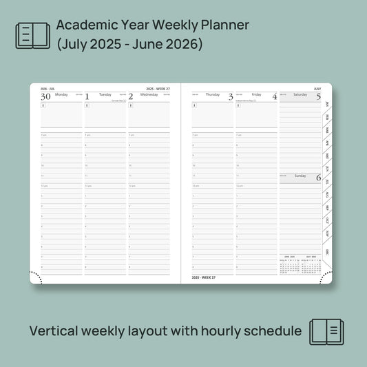 POPRUN Planner 2025-2026, (Medium 6.5'' x 8.5'' Hard Cover) Academic Calendar (July 25-June 26) Daily Weekly and Monthly Appointment Book with Hourly Time Slots, Monthly Tabs, 100 GSM - Black