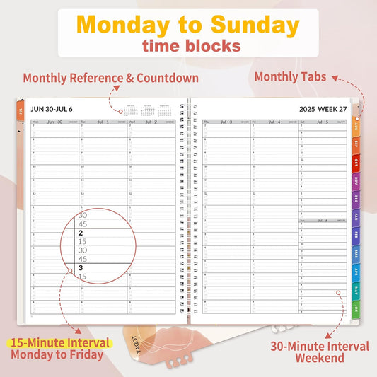 SUNEE 2025-2026 Appointment Book, Quarter-Hourly, Weekly & Monthly - from July 2025 to June 2026, 6.4"x8.3" Academic Planner, Flexible Cover, Note Pages, Pockets, Bookmark, Spiral Binding, Vintage