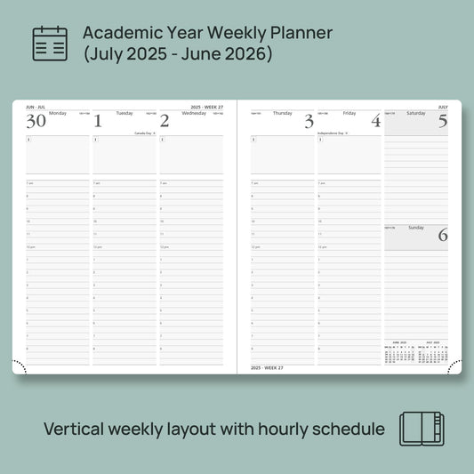 POPRUN Planner 2025-2026, (Large 8.5'' x 10.5'' Hard Cover) Academic Calendar (July 25-June 26) Daily Weekly and Monthly Appointment Book with Hourly Time Slots, Monthly Tabs, 100 GSM - Pacific Green