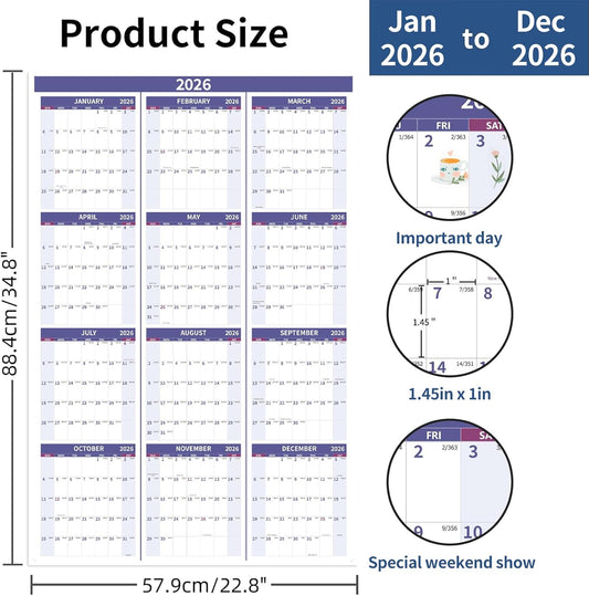 2026 Wall Calendar 34.8" x 22.8" Large Vertical Yearly Wall Hanging Calenda with Julian Date Thick Paper Calendar 12 Month Annual Wall Planner for Wall Office Fridge(Purple)