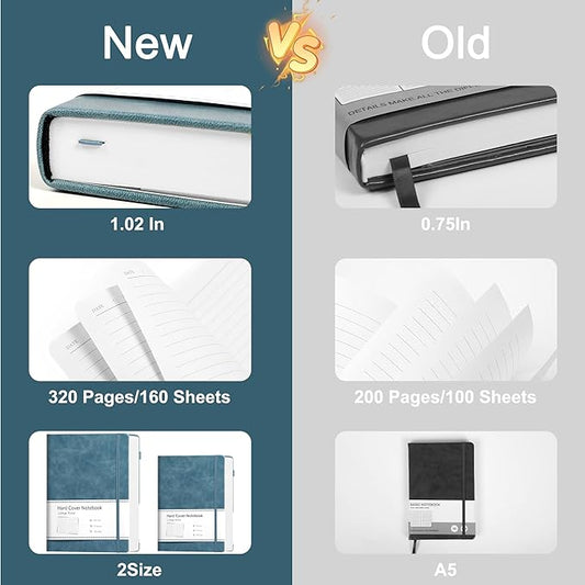 CAGIE Lined Journal Notebook, 320 Pages College Ruled Notebook, 100 Gsm Paper Thick Journal, A5 Hardcover Leather Journals for Writing Women Men, 5.7x8.3 In, Blue