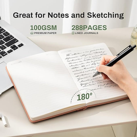Lined Journal for Women 100 GSM 288 Pages Leather Journals for Writing A5 Hardcover Travel Journals Notebook Gift Set with Pen for Work Daily Writing