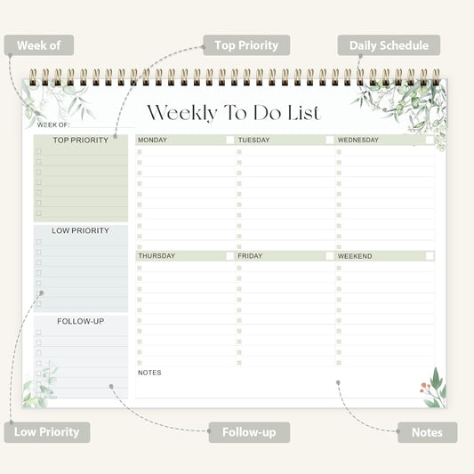Weekly To Do List Notepad, Undated Planner with 52 Sheets (8.5''x11''), Desk Weekly Planner for Women & Man, Home School & Work