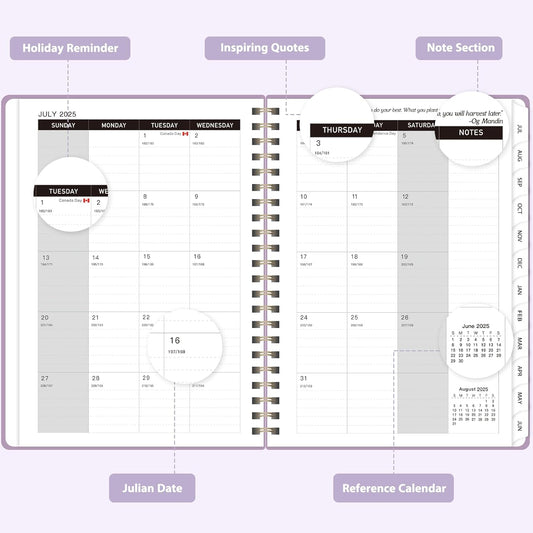 Planner 2025-2026 for Women & Men, Weekly and Monthly Calendar Notebook (July 2025 - June 2026), Hardcover Spiral Bound School Teacher Student Planner with Tabs, Inner Pocket, A5 (6.3" x 8.5")