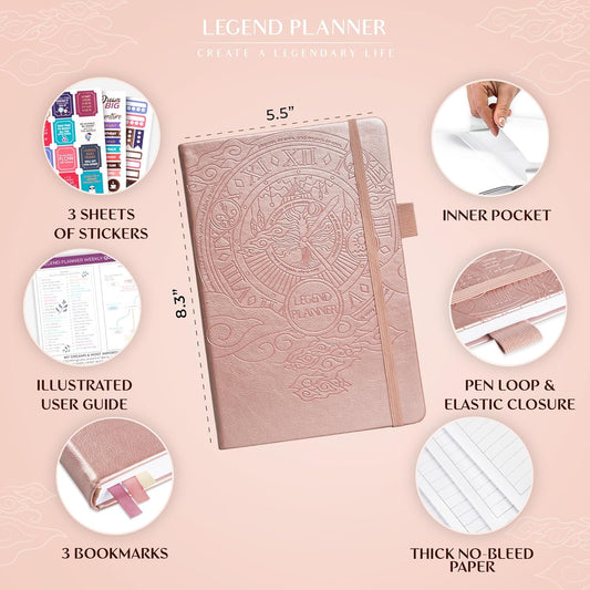Legend Planner – Weekly & Monthly Life Planner to Hit Your Goals & Live Happier. Organizer Notebook & Productivity Journal. A5 (Rose Gold)