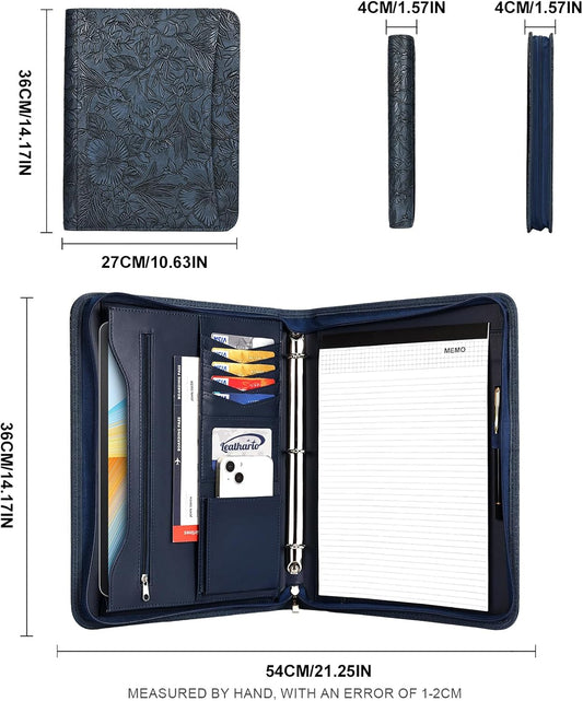 Leathario Portfolio Binder, Includes 10 Sheet Protectors and 3 Notepads, 3-Ring Folder Organizer, A4 Padfolio with Zipper, Vegan Leather Tablet Sleeve, Business Office Conference Clipboards