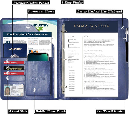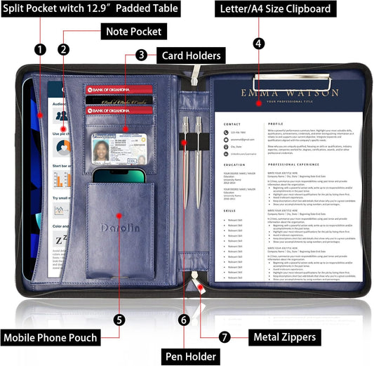 Darolin Business/Resume Padfolio Portfolio Folder with Letter/A4 Size Clipboard, Interview/Conference/Legal Document Organizer, Premium Portfolio Professional Case, Padfolio for Women/Men-Blue