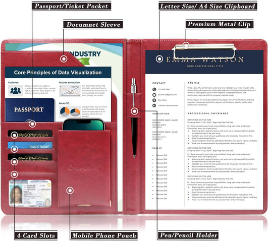 Darolin Business/Resume Padfolio Portfolio Folder with Letter/A4 Size Clipboard, Interview/Conference/Legal Document Organizer, Premium Portfolio Professional Case, Padfolio for Women/Men-Redwine