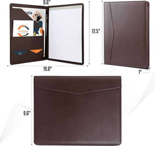 STYLIO Padfolio Portfolio Organizer Binder (Walnut Color) | Interview Resume Folder, Document, Business Card Holder |w/Letter-Sized Notepad | Handsome Brown Faux Leather Folio Matte Finish