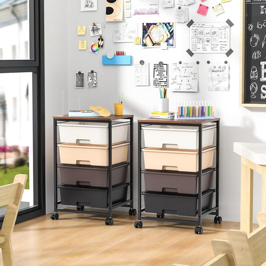 Utility Cart with 4 Drawers,Rolling Storage Cart with Drawers,Storage Rolling Drawer Cart,Brown