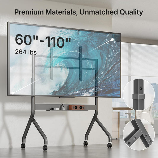 FortiLift Premium Manual Height Adjustable TV Cart for 60–110” Displays – Business-Class Rolling Stand with Crank Lift, VESA 1200×600, 264 lbs Capacity, Storage Shelf, Lockable Wheels
