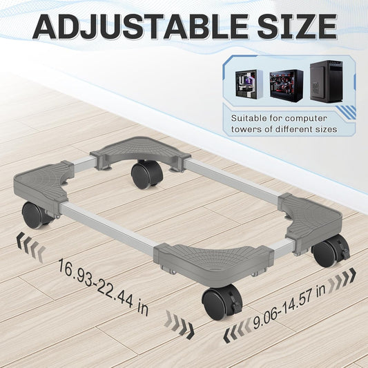 Adjustable Computer Tower Stand, Mobile CPU Stand with 4 Rolling Caster Wheels, Under Desk CPU Holder PC Floor Cart PC Riser for Gamers and Students (Standard Model)