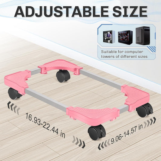 Liitrton Mobile CPU Tower Stand with Ventilation, 4 Locking Casters, Multiple Colors, Fits Most Under Desk Stands for Office Gamers (Pink)