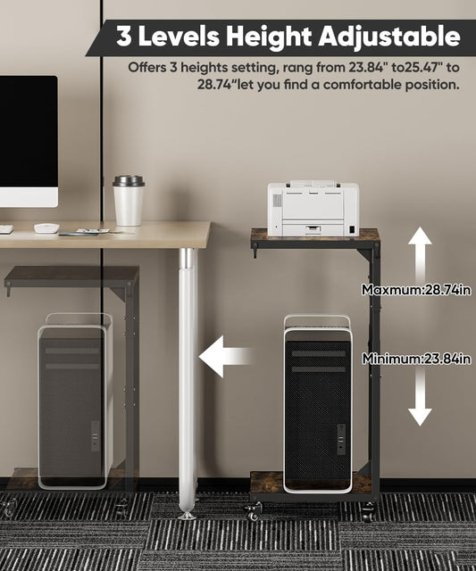 EUREKA ERGONOMIC PC Stand Computer Cart, Height Adjustable Tower Stand 2-Tier Suit for ATX Case Printer, Metal Rolling Cart on Wheels for Gaming Home Office, Maple