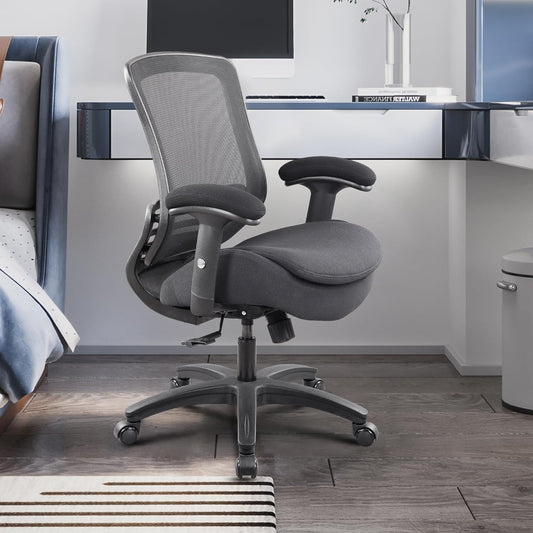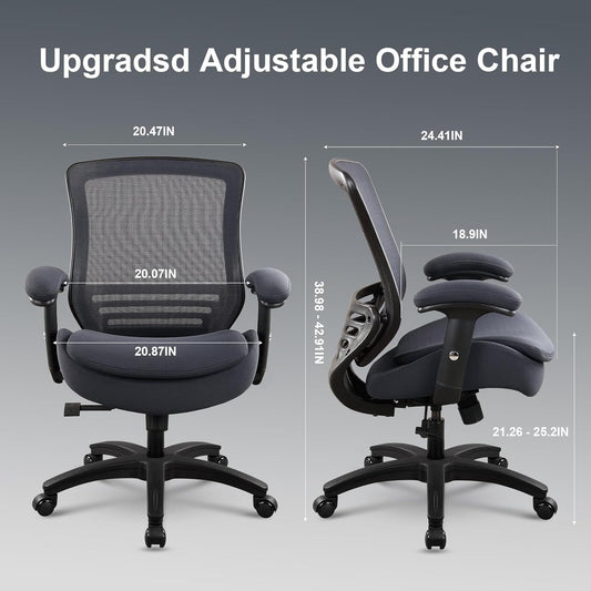 400lbs Double Seat Cushion Office Chair Soft Armrests Executive Ergonomic Computer Desk Chair with Lumbar Support (Grey Frame Grey Fabric)