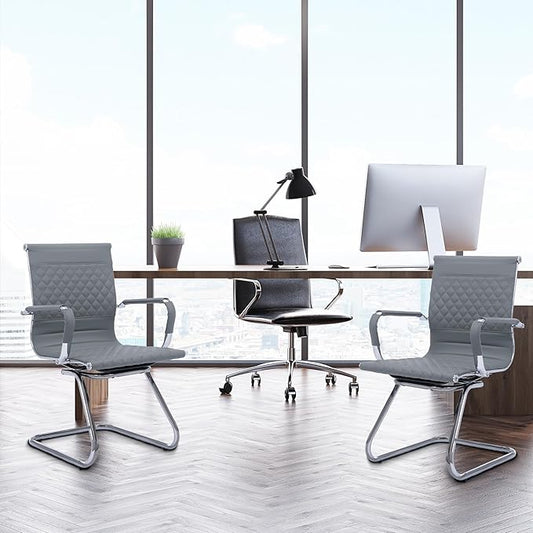 Office Guest Reception Chairs Set of 4 - Modern PU Leather Mid Back Conference Room Chairs for Waiting Room, Desk - Grey