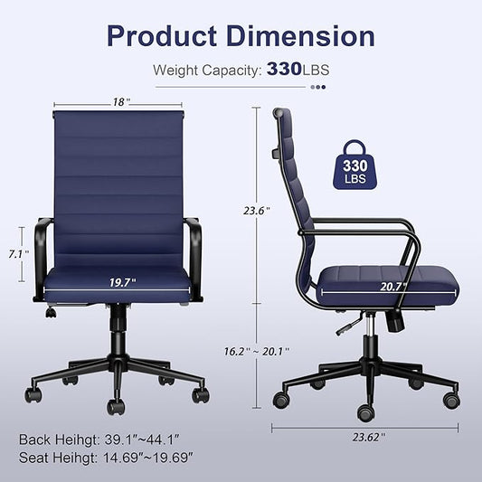 Okeysen Office Desk Chair Conference Room Chairs Modern Ergonomic Executive Swivel Chair Adjustable Height PU Leather Home Desk Chairs with Armrests Comfy Computer Task Chairs with Wheels (Navy Blue)