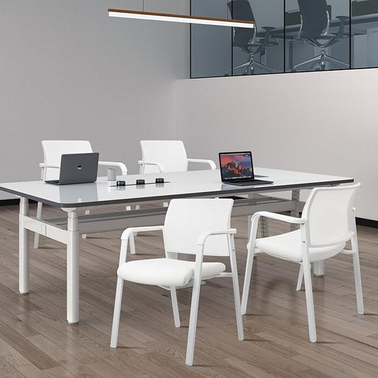 CLATINA Stacking Office Chairs | Mesh Back, Thicken Leather Seat and Arms, Ergonomic Lumbar Support | Guest Reception, Waiting, Conference, School, Party, Customer, Side, Stationary | Set of 4, White