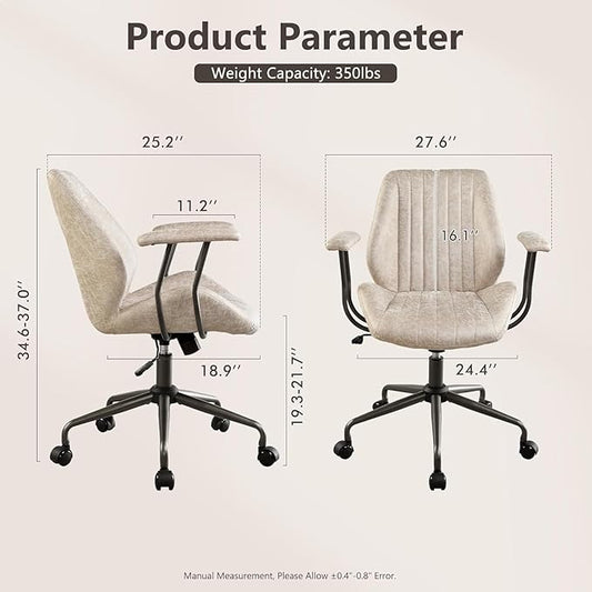 Mid Century Modren Office Chair - Swivel Executive Chair with Lumbar Support, Mid Back Ergonomic Computer Desk Chair with Wheels,Faux Lether Suede Task Chair,350lbs (Beige, Mid Back)