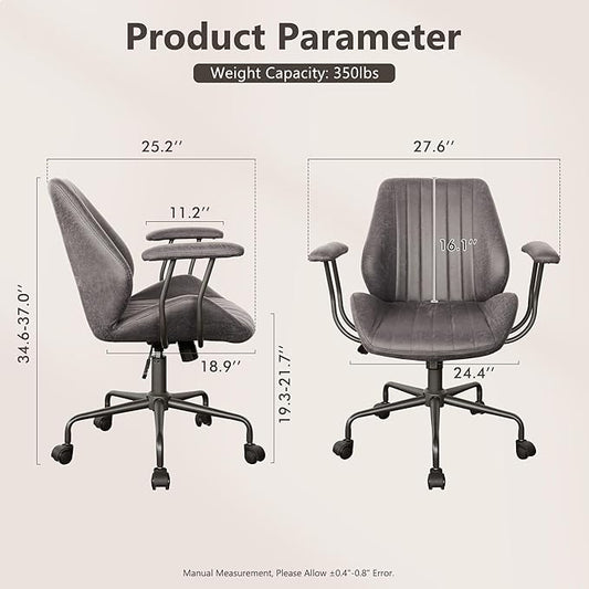 Mid Century Modren Office Chair - Mid Back Swivel Executive Chair with Lumbar Support,Ergonomic Computer Desk Chair with Wheels,Faux Lether Suede Task Chair,350lbs (Grey, Mid Back)