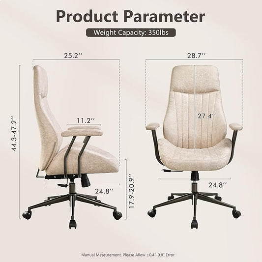 Mid Century Modren Office Chair - High Back Swivel Executive Chair with Lumbar Support,Ergonomic Computer Desk Chair with Wheels,Faux Lether Suede Task Chair,350lbs (Beige, High Back)